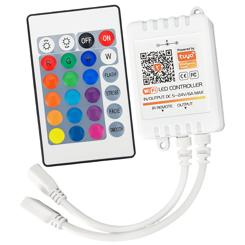 Adaptador WiFi para Cinta LED RGB para controlarla desde el celular. Fácil de usar, te permite personalizar la iluminación de cualquier espacio. Conéctalo a tu red WiFi y controla la luz desde una app compatible con iOS y Android, desde cualquier lugar con internet. Incluye más de 20 modos de cambio de color. Medidas del producto (Alt+Anch+Prof): x x cm LSC
