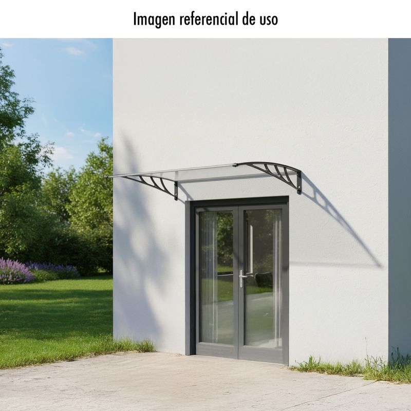 Alero de policarbonato de 80 x 125 cm en color transparente. Resistente a la intemperie y a los rayos UV, ofrece durabilidad y sombra, convirtiéndose en la solución ideal para entradas, ventanas o terrazas, combinando funcionalidad y diseño moderno en un solo producto. Medidas del producto (Alt+Anch+Prof): x 125 x 80 cm K PRO