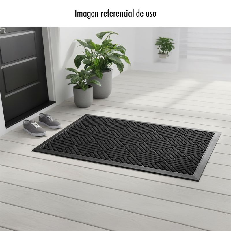 Tapete de exterior de caucho con textura acolchada de 50 x 80 . Diseñado para brindar comodidad y seguridad gracias a su textura acolchada antideslizante. Resistente a la intemperie y al desgaste, es ideal para entradas, terrazas o jardines, manteniendo tus pisos limpios mientras ofrece un toque moderno y funcional a tu hogar. Medidas del producto (Alt+Anch+Prof): 1 x 80 x 50 cm SOHO CARPETS