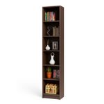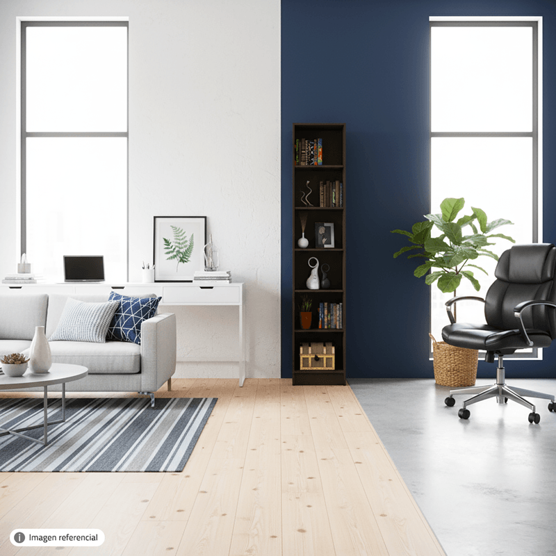Biblioteca Andy 6 Niv con destaje inferior para acoplarse a la barredera y anclarse perfectamente a la pared. 200X40X26Fabricada en melamínico AAA fácil de limpiar y desinfectar, se no mancha ni se decolora. Color Wengue. Precio no incluye armado o instalación.