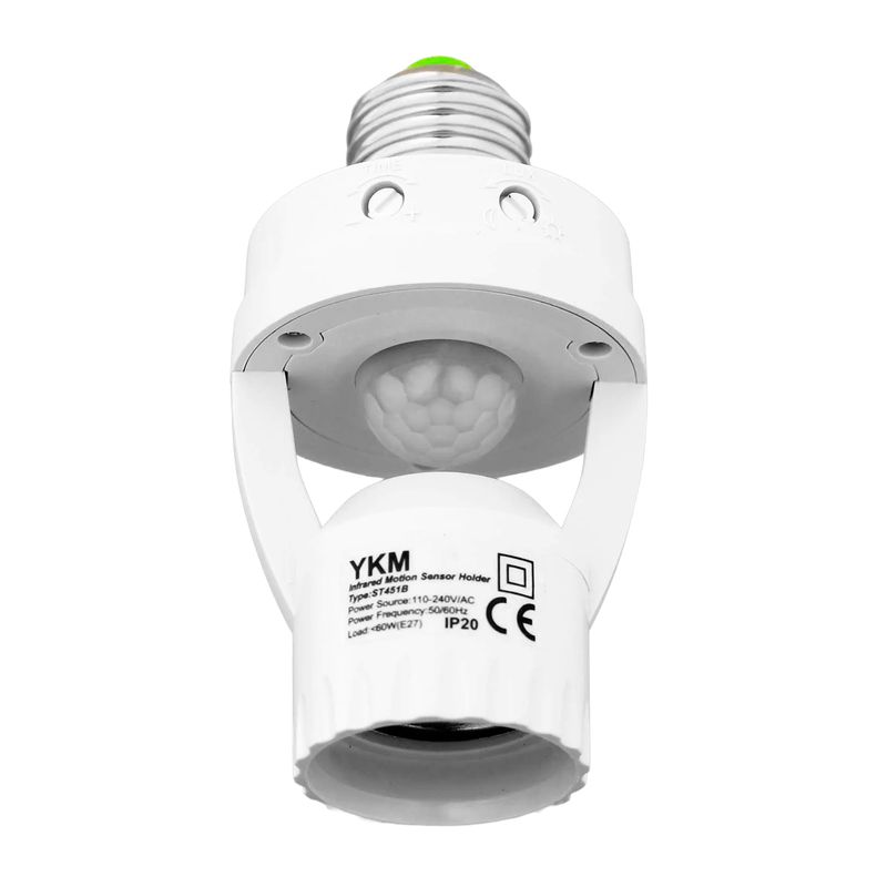 Boquilla con sensor de movimiento. Ángulo de detección: 360°. 110 V. Distancia de detección: 6 m. Luz ambiental ajustable. Ideal para ambientes interiores como sala, comedor o dormitorios. Altura recomendada para la instalación: 2 - 3.5 metros.
