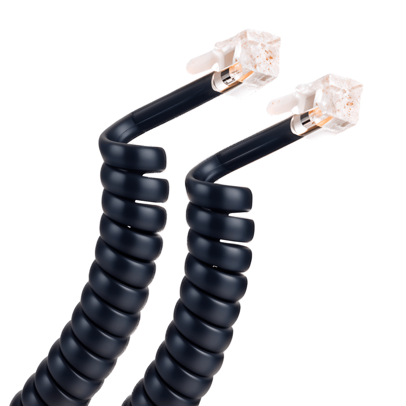 Cable espiral para teléfono con conectores RJ11 para teléfonos alámbricos fijos; 3 m. Cable telefónico retráctil de 3mts con diseño espiral flexible, conectores RJ-11 compatibles, color negro profesional y libre de enredos para mantener escritorios organizados Medidas del producto (Alt+Anch+Prof): 14 x 11 x 1 cm LSC