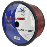 Cable para parlante 2X18 NEGRO/ROJO para instalaciones profesionales o domésticas; Venta x Metros. Cuenta con chaquetas negro - rojo, 2 conductores multifilares de alta calidad, ideales para conectar parlantes de audio o suministrar energía a equipos. Su grosor 18AWG asegura buena conductividad y durabilidad, ofreciendo una solución práctica y confiable para instalaciones de audio en casa, oficina o estudios profesionales Medidas del producto (Alt+Anch+Prof): x x cm LSC