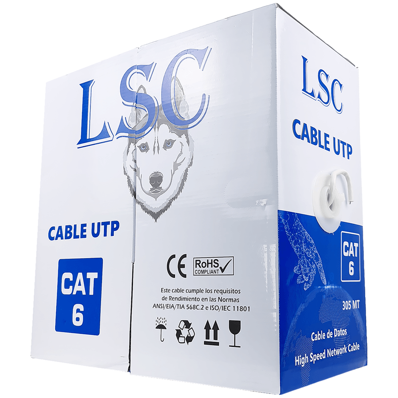 Cable de Red UTP CAT6E con 4 pares trenzados, cobre sólido 23 AWG 1000Mbps; Venta x metros. Ideal para instalaciones de cableado estructurado. Cumple con los estándares internacionales ANSI/TIA/EIA 568C.2 e ISO/IEC 11801, garantizando una transmisión de datos confiable y libre de interferencias. Medidas del producto (Alt+Anch+Prof): x x cm LSC