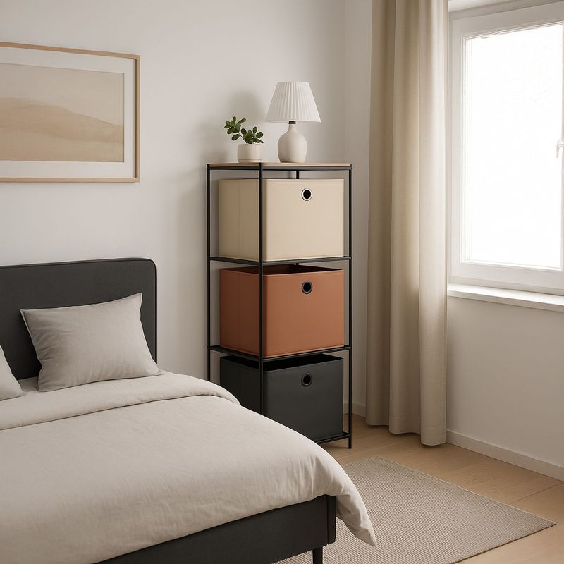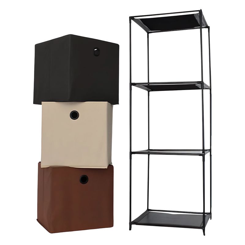 Cajonera de 35 x 35 x 102 cm, con tres cajas de almacenamiento plegables. Ideal para guardar ropa, juguetes, documentos y más. Su diseño compacto permite ahorrar espacio cuando no está en uso, mientras que su estructura resistente garantiza durabilidad. Perfecta para el hogar, la oficina o cualquier ambiente que necesite orden y funcionalidad. Medidas del producto (Alt+Anch+Prof): 102 x 35 x 35 cm STORAGE SOLUTIONS