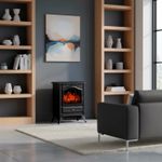 Calefactor tipo chimenea negro metálico con efecto realista de leños prendidos en llamas. Incluye una perilla/termostato que permite seleccionar la intensidad de calor deseada + 1 nivel (solo ventilador), una perilla de efecto realista de luz y un protector termal contra sobrecalentamiento. CARACTERÍSTICAS: 120 AC 750 W - 1500 W. Medidas del empaque: 34 x 58 x 49 cm. Peso: 7.77 kg. POWER ZONE