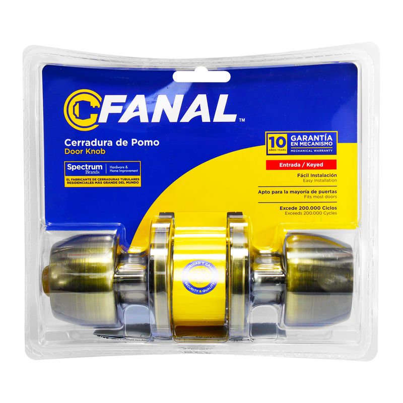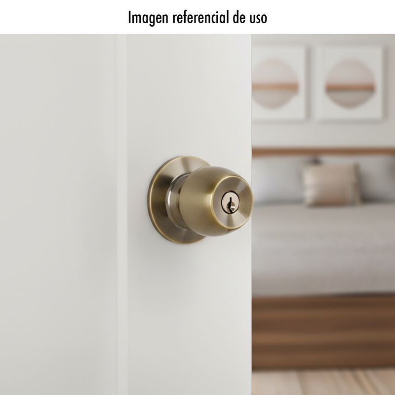 Cerradura tipo pomo "DEVON" color latón antiguo para dormitorio. Diseñada especialmente para dormitorios que buscan combinar seguridad y estilo. Su acabado clásico aporta un toque sofisticado a cualquier ambiente, mientras que su mecanismo confiable garantiza privacidad y facilidad de uso. Perfecta para quienes valoran calidad, durabilidad y diseño en cada detalle de su hogar. Medidas del producto (Alt+Anch+Prof): 7,5 x 17,5 x 13,5 cm FANAL
