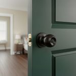 Cerradura de pomo para dormitorio de negro mate, diseño BOLTON con SEGURO. Asegura la privacidad. Ideal para habitaciones y puertas interiores, ofrece resistencia con su bocallave de 5 pines y hasta 200,000 ciclos de uso. Su diseño reversible derecha/izquierda y fácil instalación la hacen práctica y versátil. Incluye juego de llaves y manual, lista para darle seguridad y estilo a tu hogar. Medidas del producto (Alt+Anch+Prof): 6,5 x 13,8 x 6,5 cm FANAL