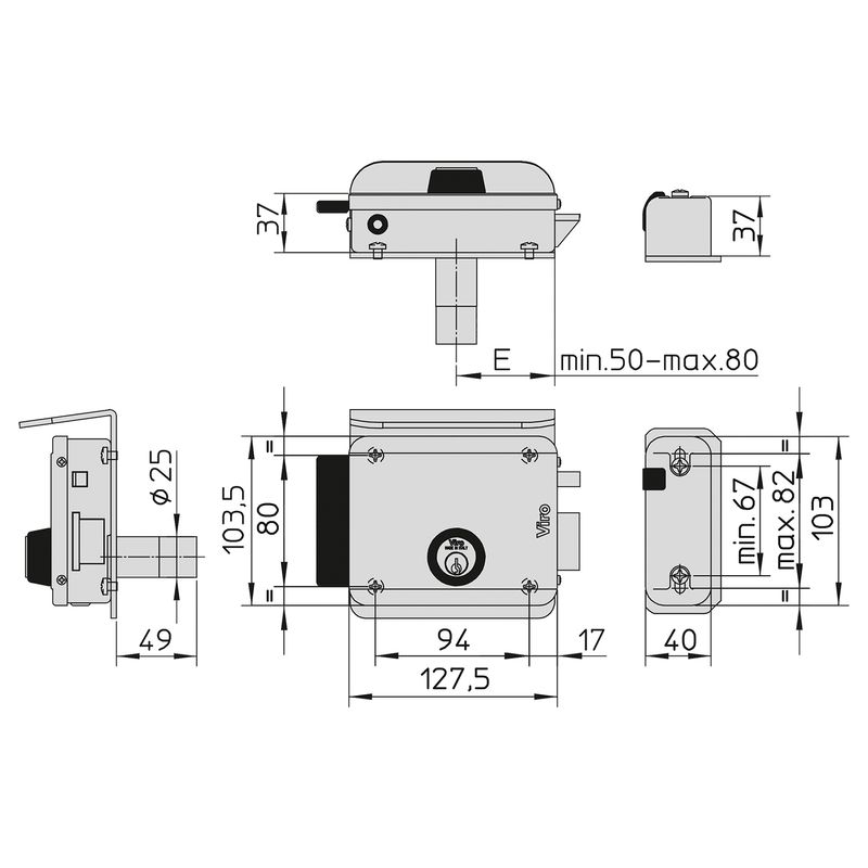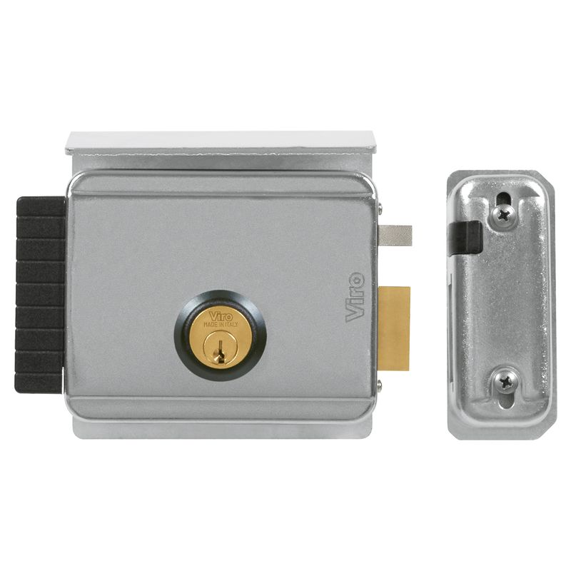 Cerradura eléctrica de entrada regulable entre 50 mm y 80 mm. Ofrece versatilidad y seguridad, con entrada regulable de 50 a 80 mm, ideal para puertas y portones peatonales de interior o exterior. Su diseño permite una instalación sencilla y compatible con la mayoría de cerraduras ya existentes, conservando el mismo recibidor metálico. Disponible en acabado antracita metalizada, perfecta para madera, y zincada para metal, resiste incluso cambios térmicos extremos, combinando funcionalidad, durabilidad y estilo en un solo producto. Medidas del producto (Alt+Anch+Prof): 10,3 x 12,8 x 8,9 cm VIRO