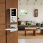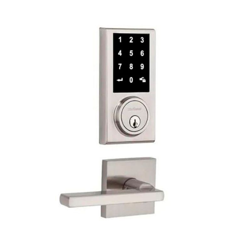 Cerradura electrónica con manija. Pantalla táctil. Adaptable a puertas derechas o izquierdas. Acabado satín níquel. Kwikset.