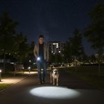 Correa retráctil para perros negra de 4.5 metros de longitud con estuche plástico, mango ergonómico y linterna LED. Perfecta para salidas de paseo y mantener controlada la distancia de la mascota. Incluye gancho metálico de liberación rápida. Medidas del empaque: 6.5 x 27 x 26.7 cm. Peso: 0.3 kg. DUKES
