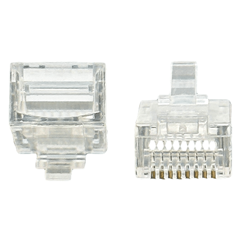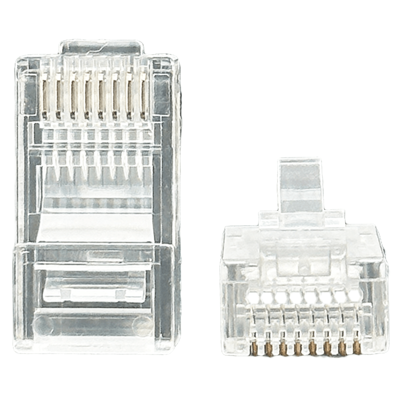 Conector RJ45 CAT5 diseñado para facilitar la alineación correcta de los hilos; Pack x 10 unidades. Compatible con velocidades de hasta 1000 Mbps y frecuencias de 100 MHz, asegurando un rendimiento óptimo en redes categoría 5 - 6 ideal para terminar cables Ethernet y lograr una conexión confiable y de alta velocidad en redes domésticas, comerciales o industriales. Medidas del producto (Alt+Anch+Prof): 14 x 11 x 1 cm LSC