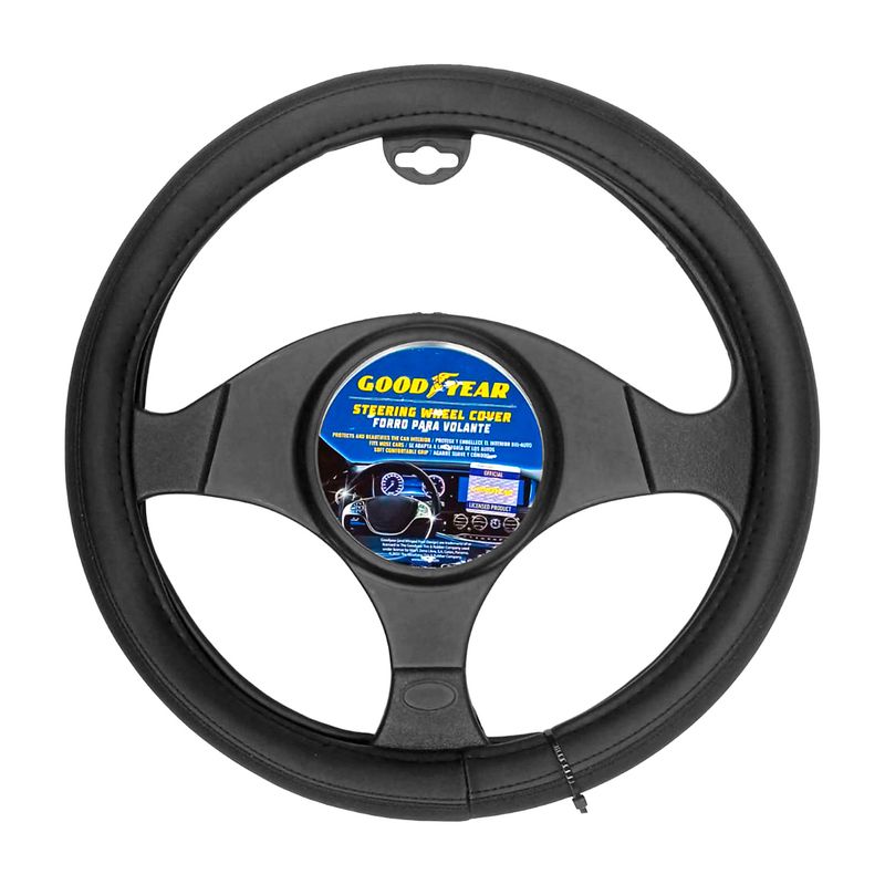 Cobertor para volante. Color negro. Se adapta a la mayoría de autos. Suave y cómodo agarre. Good Year