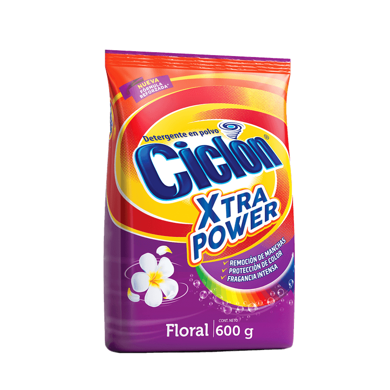 Detergente en polvo xtra power removedor de manchas para ropa blanca y de color con aroma floral; 600 gr - CICLÓN