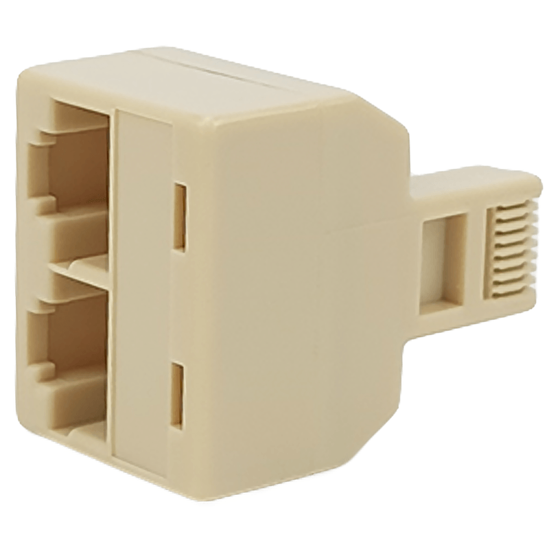 Duplicador para internet RJ45 macho con 2 puertos hembra para dividir señal de red. Duplicador RJ45 con conector macho y 2 puertos hembra, compatible con redes Ethernet 10/100 Mbps, usa los 8 pines para datos, voz o video; no permite conexiones simultáneas como un switch. Medidas del producto (Alt+Anch+Prof): 14 x 11 x 1 cm LSC