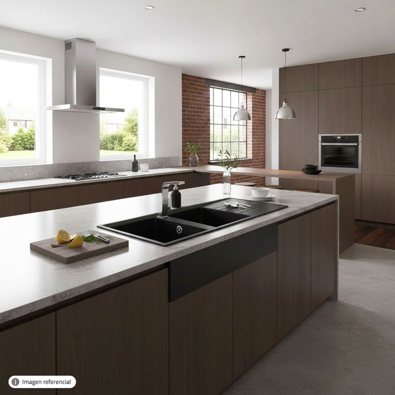 Fregadero STONE 80 B-TG 2C reversible de Tegranite+ CARBON de 2 cubetas de 1160 x 510 mm. Fregadero Tegranite+ de dos cubetas y escurridor alargado. Superficie de alta resistencia a impactos, choques térmicos y altas temperaturas. Resistente a la decoloración. Instalación empotrado. Cesto de 3½" con sifón. Cubetas de 200 mm de profundidad. Mueble de 80 cm. Medidas del producto (Alt+Anch+Prof): x x cm TEKA