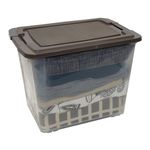 Guardamovil Briko con tapa grande café camel. Guardamóvil transparente grande multiusos con tapa de cierre semi hermético, incluye ruedas para facil movilización Medidas del producto (Alt+Anch+Prof): 40 x 52 x 35 cm CASA PICA