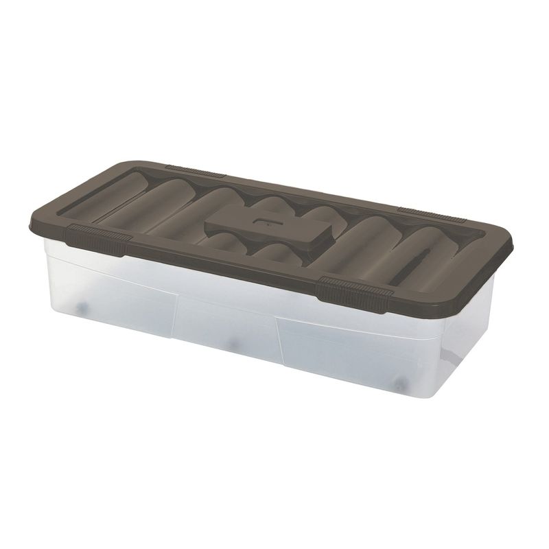 Guardamovil Click bajo gris oscuro de 40 litros. Guardamovil bajo transparente plástico de 40 litros de capacidad interna con cierre tipo click y mini ruedas de transporte. Medidas del producto (Alt+Anch+Prof): 18,5 x 40 x 80 cm CASA PICA