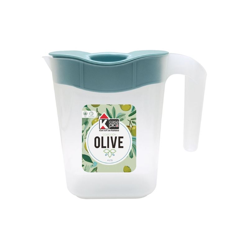 Jarra Olive Rect multiusos de 1,9 lts celeste. Con empuñadura de agarre simple y tapa semi hermética desmontable. Medidas del producto (Alt+Anch+Prof): 19,8 x x 21,8 cm CASA PICA