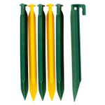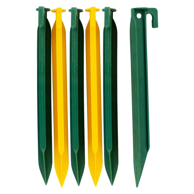 Juego de 6 estacas plásticas para carpas, amarillo y verde de 23 cada una. Ligeras, duraderas y fáciles de usar, cuentan con extremos puntiagudos para un anclaje firme y tapas con gancho que facilitan su extracción. Con 9" de largo, son ideales para cualquier terreno y perfectas tanto para campistas principiantes como para aventureros experimentados. Medidas del producto (Alt+Anch+Prof): 23 x 1,8 x 3,5 cm KOLE IMPORTS