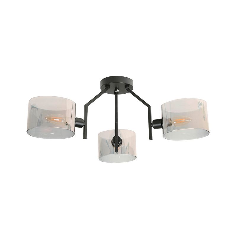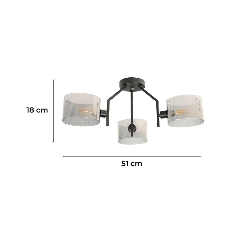Lámpara de techo moderna. Acabado estructura negra, vidrios aros transparentes. 3 luces. Boquilla E27.