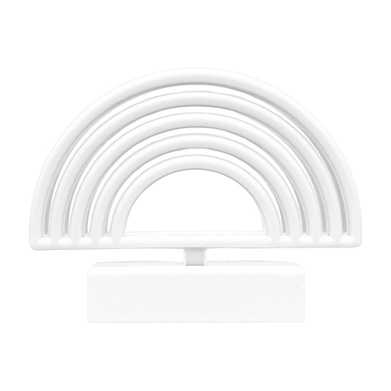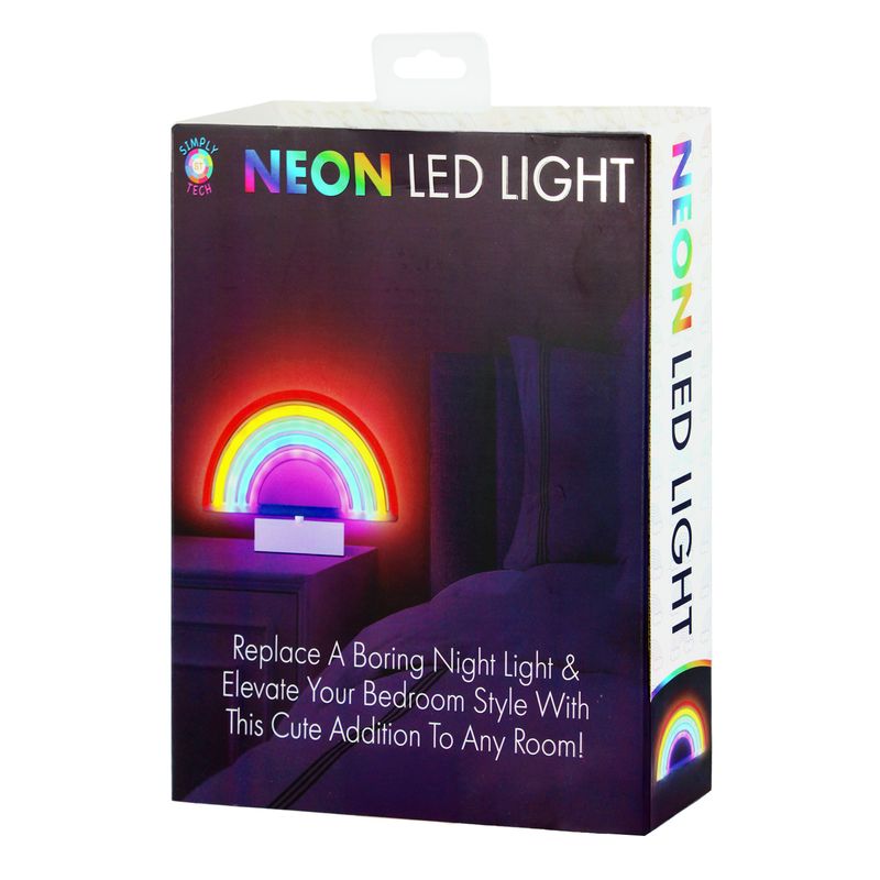 Lámpara LED guía tipo neón en forma de ARCOIRIS para habitaciones de niñ@s. Su diseño vibrante y alegre ilumina habitaciones infantiles, dormitorios o zonas de juego con un brillo divertido y acogedor. Cuenta con luces LED eficientes y botón de encendido/apagado. Ideal para decorar con estilo y buen ánimo cualquier ambiente. ¡Una lámpara que alegra con solo encenderla! Su funcionamiento requiere de 2 baterías AA (no incluidas). Medidas del producto (Alt+Anch+Prof): 16,4 x 22,3 x 3 cm SIMPLY TECH