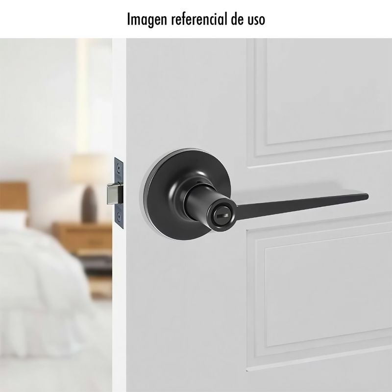 Cerradura de manija "Rennes" en color negro mate para baño. Su acabado sofisticado aporta un toque moderno a cualquier espacio, mientras que su mecanismo seguro y confiable garantiza privacidad y comodidad en cada uso. Fácil de instalar y resistente al desgaste, es la opción ideal para quienes buscan calidad, diseño y practicidad en un solo producto. Medidas del producto (Alt+Anch+Prof): 6,5 x 16 x 13,7 cm FANAL