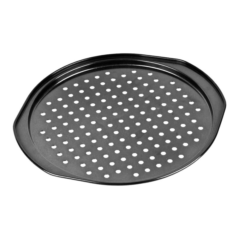 Molde para pizza redondo perforado de 30,5 cm de diametro. Diseñado para una cocción uniforme y profesional. Su superficie perforada permite una mejor circulación del calor y evita la acumulación de humedad, logrando una base dorada y deliciosa en cada preparación. Ideal para uso en horno convencional, este molde combina durabilidad, eficiencia y practicidad, convirtiéndose en un básico imprescindible para los amantes de la pizza casera. Medidas del producto (Alt+Anch+Prof): 1,5 x 30,5 x 30,5 cm BAKER'S SECRET