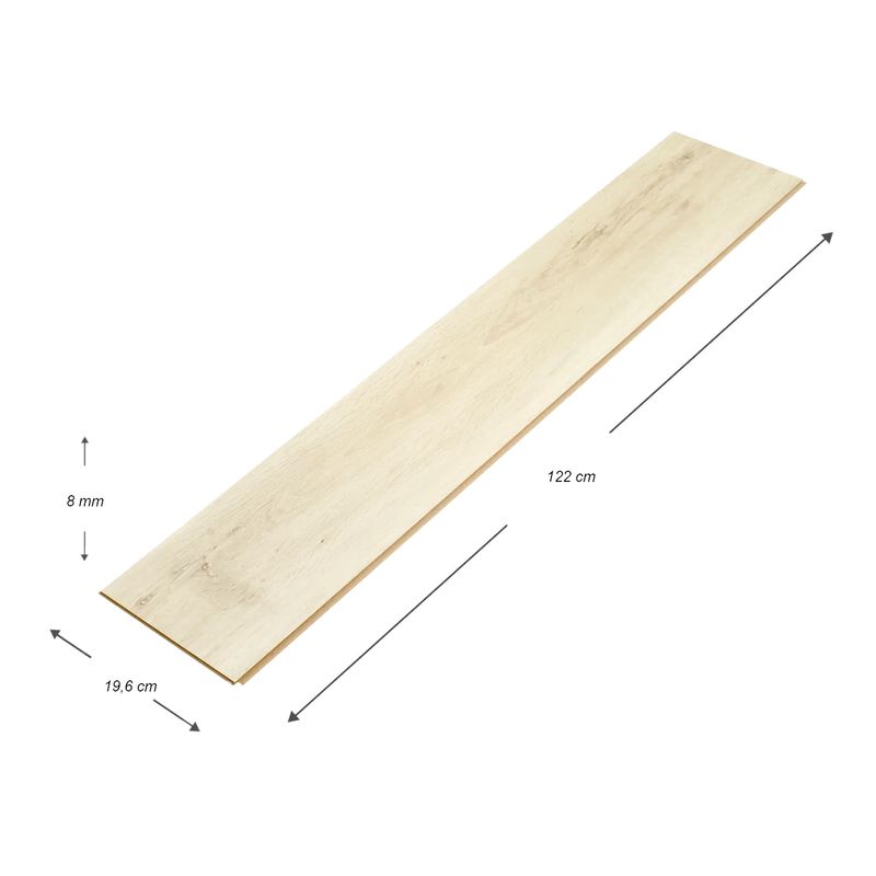Piso flotante color CREMA de 122 x 19,6 con 8 mm de espesor. Diseñado para brindar resistencia, durabilidad y un acabado elegante a cualquier espacio. Su instalación es rápida y práctica, ofreciendo una superficie moderna, fácil de limpiar y perfecta para transformar ambientes con estilo y confort. Medidas del producto (Alt+Anch+Prof): 0,8 x 122 x 19,6 cm K PRO
