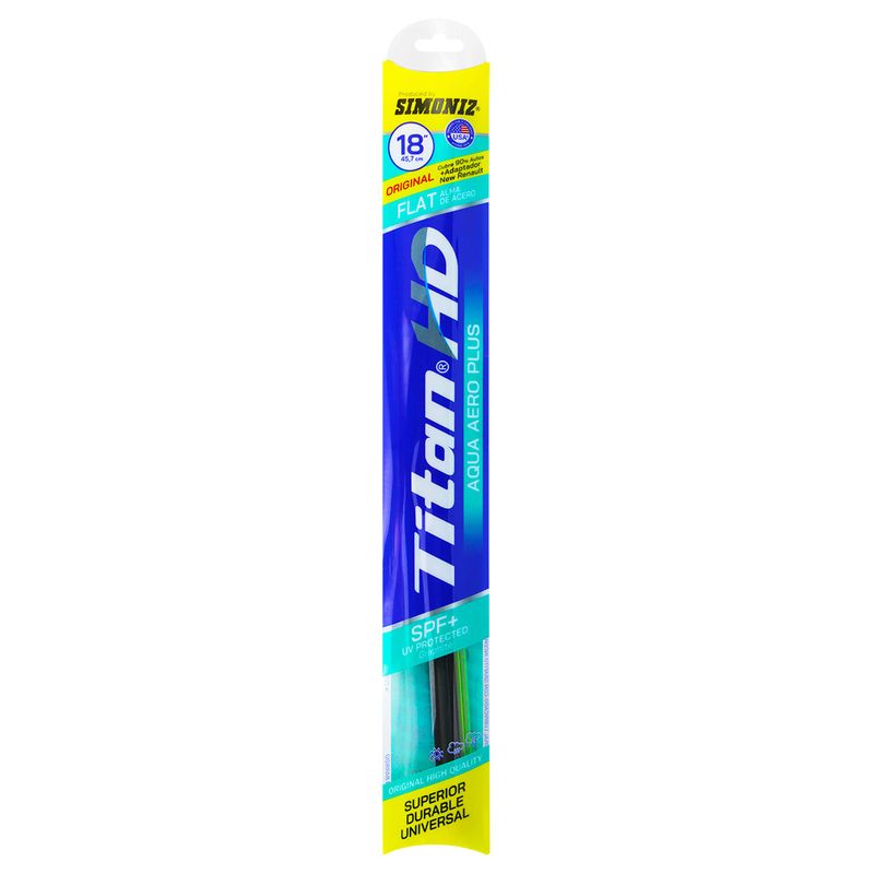Pluma limpia parabrisas "TITAN HD" de 18" universal. Ideal para mantener tu visibilidad siempre clara y segura. Su diseño universal garantiza una instalación rápida y compatible con la mayoría de vehículos, mientras que su construcción resistente ofrece un desempeño duradero incluso en las condiciones más exigentes. Medidas del producto (Alt+Anch+Prof): 2,5 x 45,7 x 2,5 cm SIMONIZ