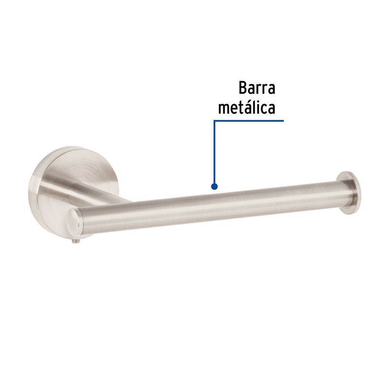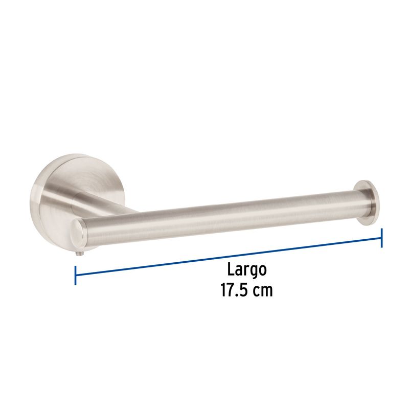 Portarrollo metálico para baño de la línea TUBIG, con elegante acabado en níquel satinado. Accesorio de baño funcional y decorativo que aporta un toque de elegancia con su acabado en níquel satinado, el cual es resistente a manchas de agua y huellas. Su sólida construcción metálica garantiza una larga vida útil en ambientes húmedos. Es de fácil instalación en la pared e incluye todos los herrajes necesarios para un montaje oculto y firme, manteniendo el estilo y la organización en tu cuarto de baño. Medidas del producto (Alt+Anch+Prof): x x cm FOSET