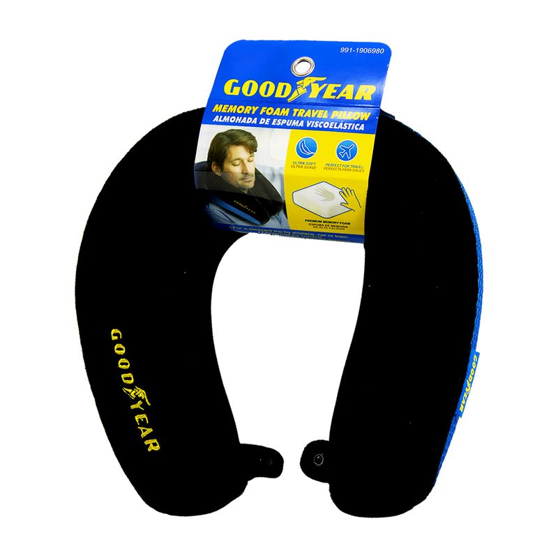 Protector para nuca color negro con azul MEMORY FOAM para choferes. Disfruta de la máxima comodidad en cada viaje, diseñado especialmente para choferes. Su relleno de memory foam se adapta a la forma de tu cuello, brindando soporte ergonómico y reduciendo la tensión durante horas de manejo. Moderno, práctico y duradero, es el accesorio ideal para conducir con confort y estilo. Medidas del producto (Alt+Anch+Prof): 12 x 29 x 31 cm GOODYEAR