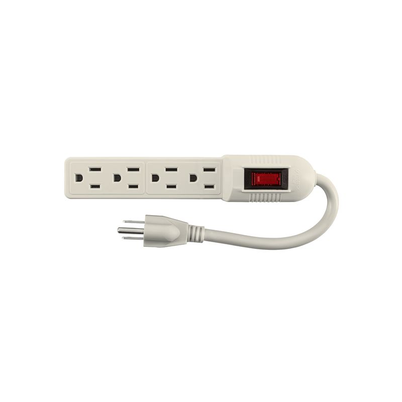 Regleta doméstica de 4 tomas con 1625 W de potencia y contactos aterrizados. Ideal para televisores, videojuegos, equipos de cómputo, audio y video. Fabricado en ABS y PVC de alta resistencia, cuenta con 4 entradas y un interruptor con luz indicadora para mayor seguridad y control. Diseñado para ofrecer protección contra cortocircuitos y sobrecargas de corriente, incorpora ranuras para montaje en pared, lo que lo hace práctico y funcional para el hogar u oficina. Medidas del producto (Alt+Anch+Prof): 3,8 x 18,5 x 3,5 cm VOLTECK