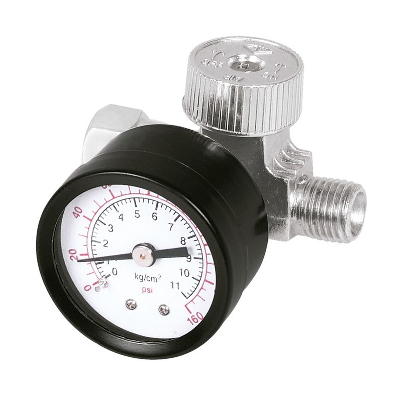 Regulador de aire con manómetro con entrada de aire de 1/4" NPT de 160 PSI para compresor de aire. Regulador de aire con manómetro y rosca de 1/4" NPT para ajustar y mantener la presión de trabajo en sistemas neumáticos. Medidas del producto (Alt+Anch+Prof): x x cm TRUPER