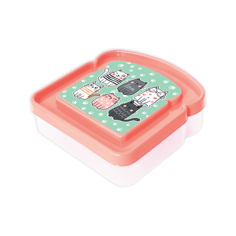 Sanduchero Cats rosado coral. Sanduchero transparente con tapa rosa y diseño de gatos rosas bealive. Ideal para colocar en su interior un sanduche y llevarlo de colación. Medidas del producto (Alt+Anch+Prof): 3,5 x 12,5 x 13 cm CASA PICA