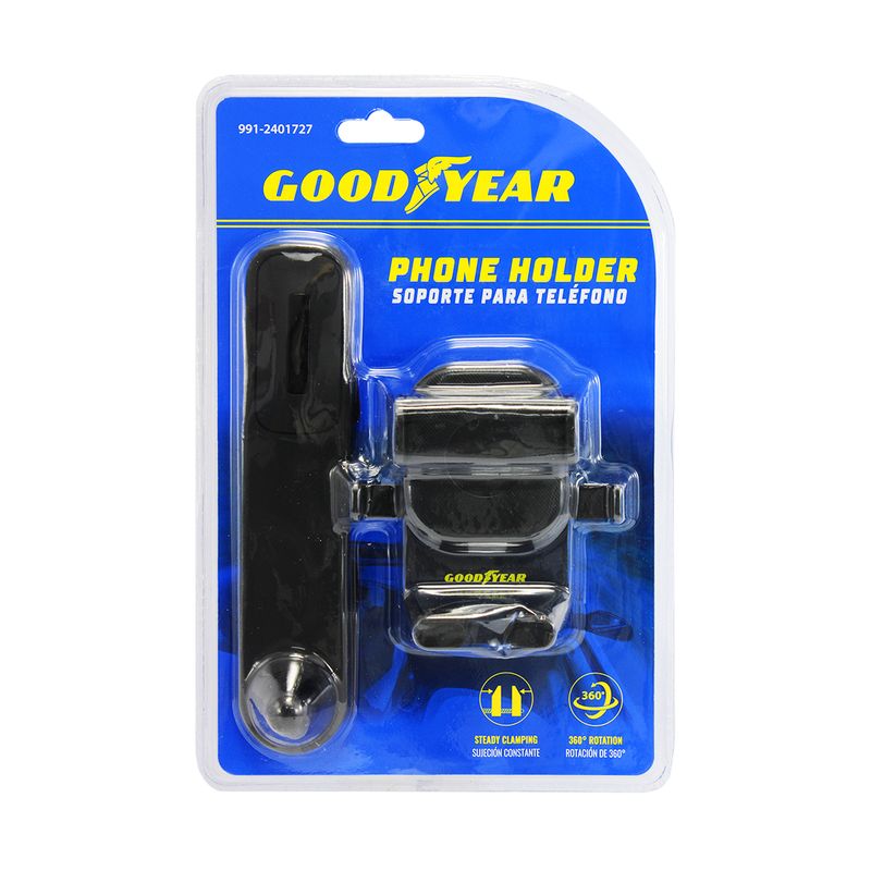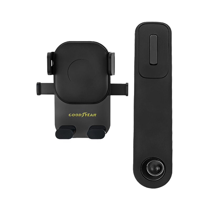 Soporte de celular para VEHÍCULO, 2 piezas, color egro, de 11 x 6cm. Mantén tu celular siempre a la vista y seguro con el porta celular universal Goodyear de 11x6 cm, ideal para el tablero de tu auto. Su diseño compacto y resistente ofrece un agarre firme sin dañar tu dispositivo, permitiéndote conducir con mayor comodidad y seguridad. Compatible con la mayoría de celulares, es la solución práctica y confiable que necesitas para tus viajes diarios. Medidas del producto (Alt+Anch+Prof): 11 x 6 x 5 cm GOODYEAR
