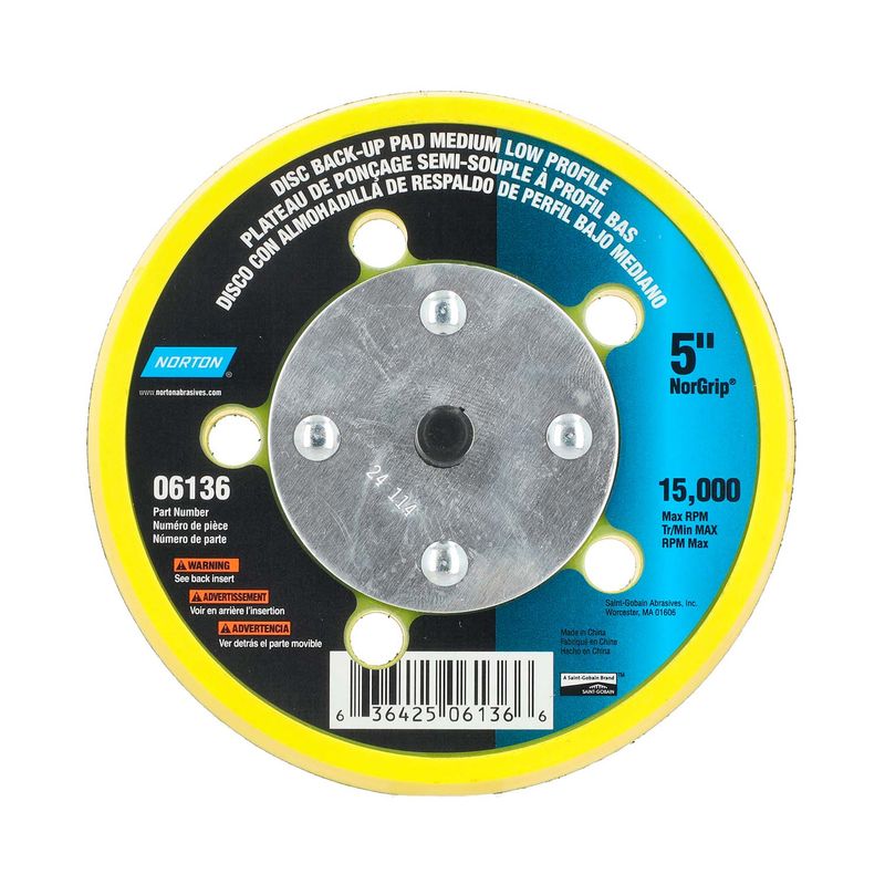 Soporte para disco velcro de perfil cónico de 5 pulgadas Desarrollado para trabajos en superficies planas y curvas en contornos, resistente a los golpes y de uso confortable debido a su perfil cónico. Medidas del producto (Alt+Anch+Prof): x x cm NORTON