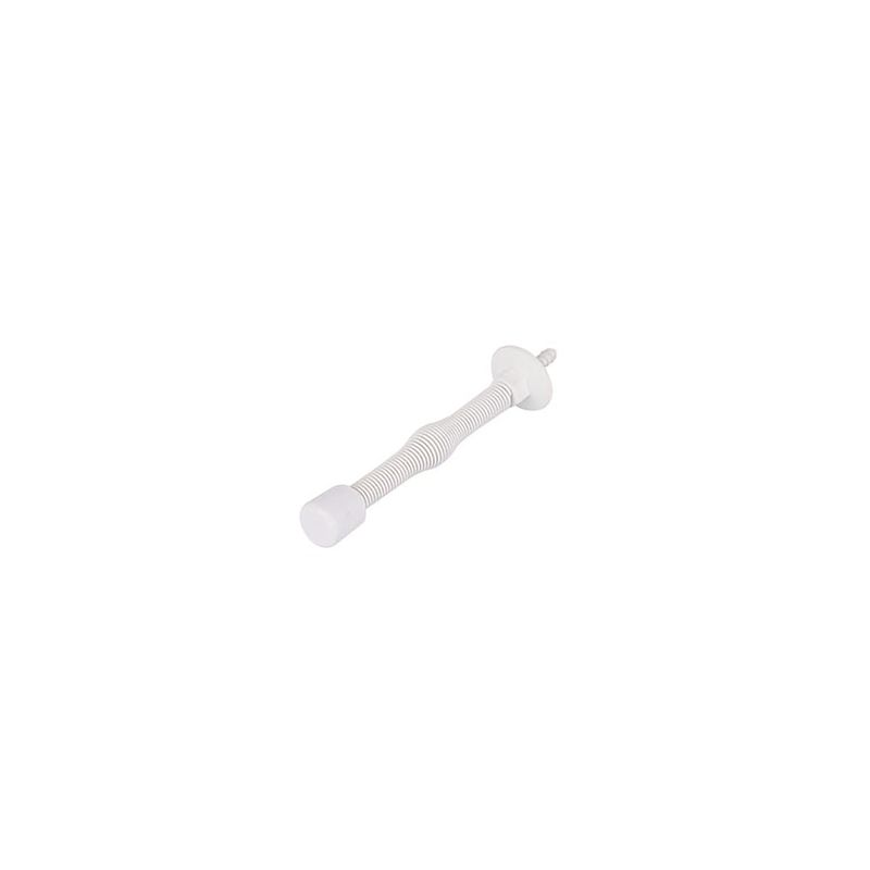 Punta de lástico y diseño flexible para seguridad y fácil limpieza. Proyección 3-1/8 In. Acabado: Blanco. Altura: 3-3/4 In. Incluye: Punta blanca. Material: Acero. Tipo De Montaje: Zócalo. Tipo: Resorte. Se Utiliza Para Evitar Marcas En La Pared Y Proteger la puerta.